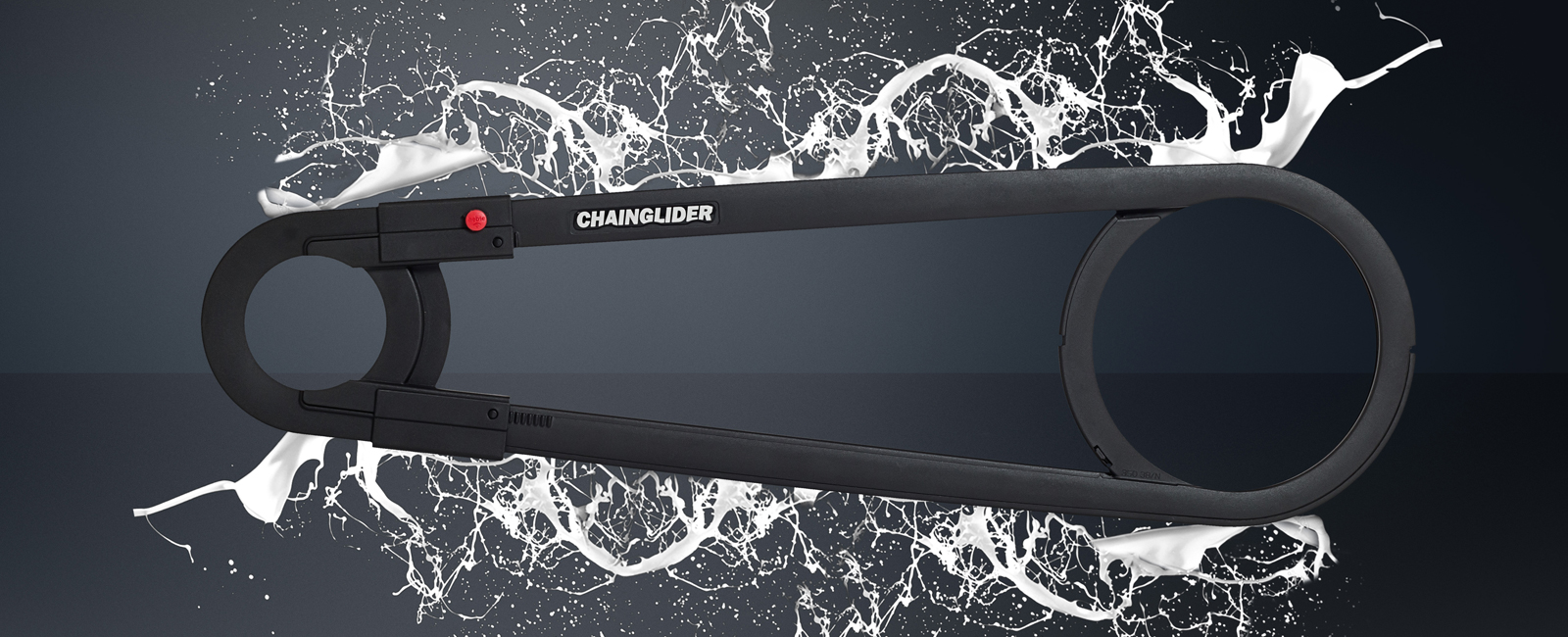 Der freitragende Voll-Kettenschutz „Chainglider“ verbindet das Nützliche mit dem Praktischen: Die Hose bleibt sauber, die Lebensdauer der Kette wird bei geringerem Wartungsaufwand verlängert und der Zugriff auf die Kette ist ohne Werkzeug möglich.