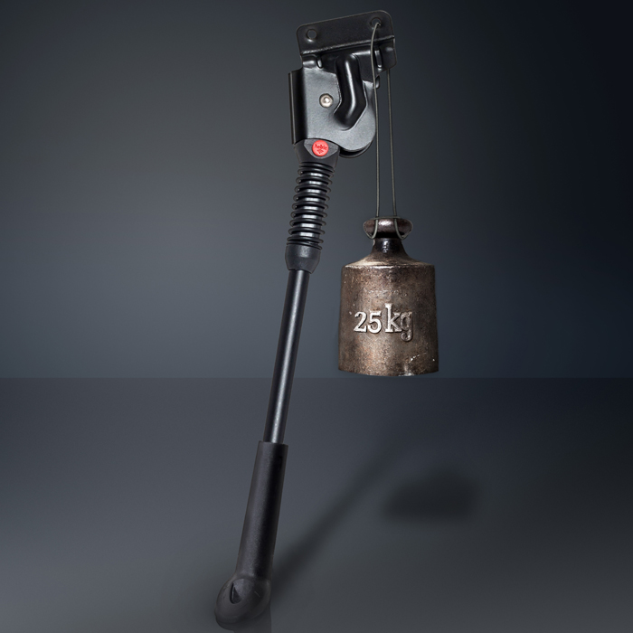 Beispielhaft für alle Hebie Fahrradständer stehen die Serien FIX (Hinterbau) und REX (Mittelbau). Sie sind extrem belastbar und sorgen auch bei hoher Zuladung für sicheren Stand. Einklappen und Ausklappen, auch mehr als 15.000 Mal, funktioniert dauerhaft zuverlässig und sicher.